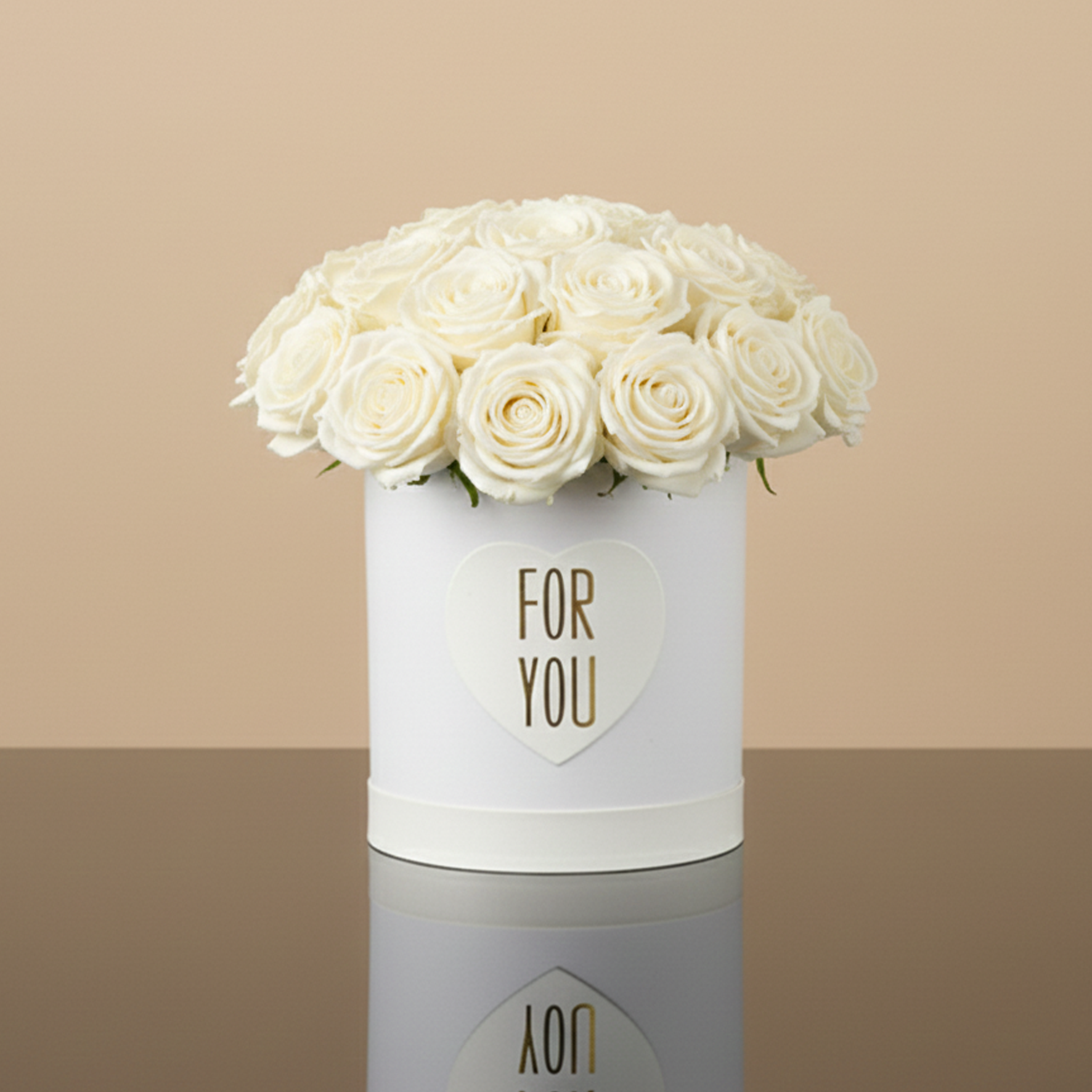 باقة من الورود البيضاء النقية تعبّر عن الرقي والصفاء. تتكون من ورود طبيعية ذات تدرجات كريمية ناعمة، منسّقة بعناية داخل صندوق ورد أبيض ، وتُزيّنها عبارة for you بلون ذهبي دافئ لإضفاء لمسة من الإهتمام . تناسب حفلات الخطوبة، التهنئة، الاعتذار، أو حتى لمسة هادئة في أي يوم مميز. “بيلا” لا تهدي وردًا فقط، بل تهدي شعورًا صافياً بكل معنى الكلمة.