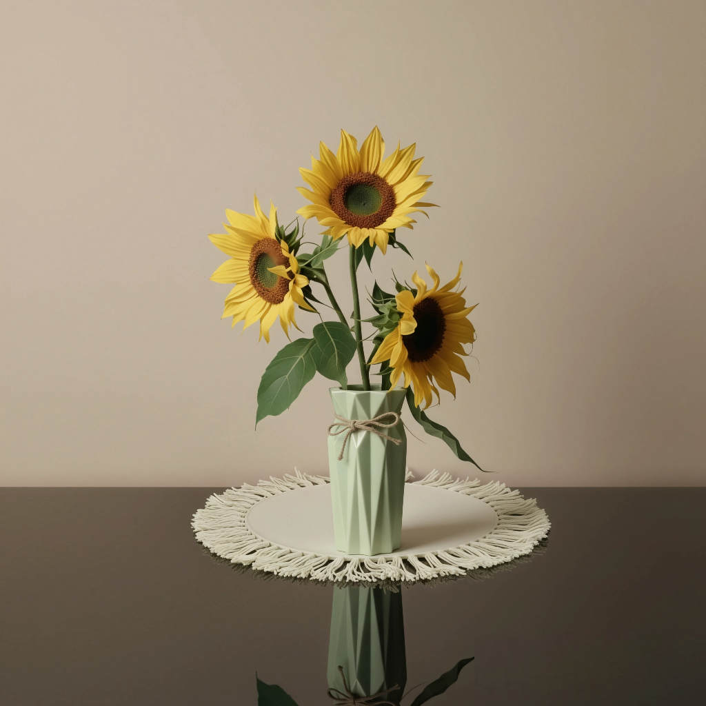 فازة أنيقة مع زهور عباد الشمس تضيف إشراقة وحيوية لأي مكان.